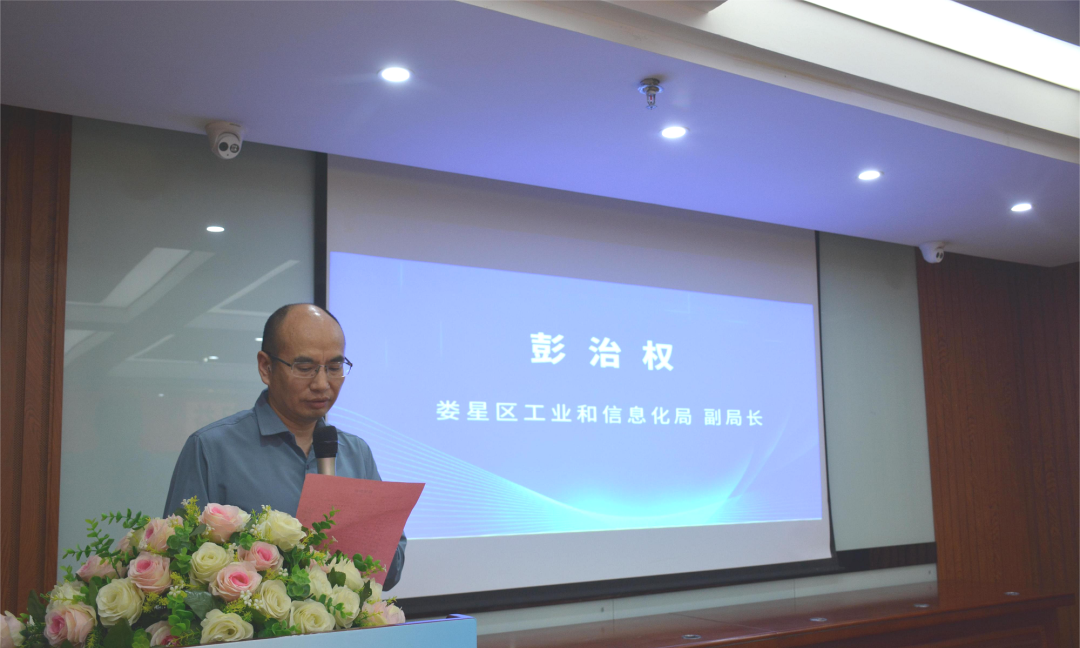 (圖為區(qū)工信局黨組成員、副局長(zhǎng)彭治權(quán)致辭)