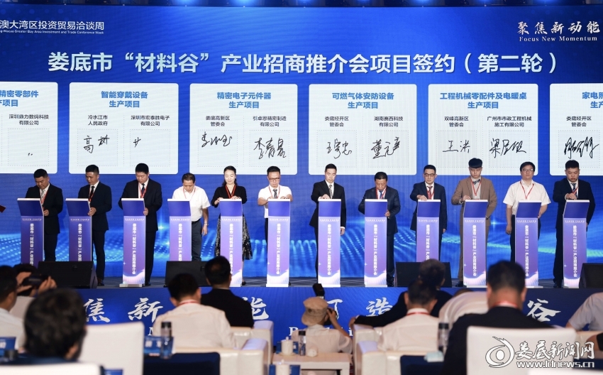 婁底新聞網(wǎng)訊(婁底日?qǐng)?bào)全媒體記者 羅宗 劉婷)5月28日,借助2023年湖南-粵港澳大灣區(qū)投資貿(mào)易洽談周契機(jī),婁底市在深圳舉行“材料谷”產(chǎn)業(yè)招商推介會(huì),現(xiàn)場(chǎng)簽約項(xiàng)目24個(gè),總投資135.2億元。婁底市委副書記、市長曾超群致辭。