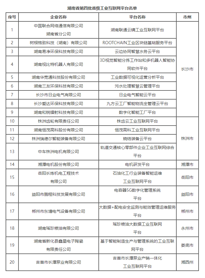附件:湖南省第四批省級工業(yè)互聯網平臺名單