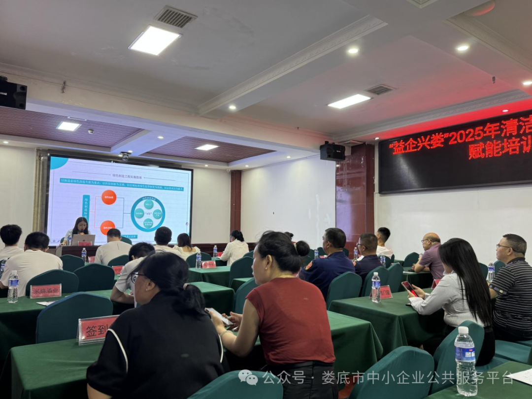 為深入貫徹落實國家“雙碳”目標,加快推進綠色制造體系建設(shè),助力企業(yè)綠色低碳轉(zhuǎn)型,2025年7月18日由婁底市中小企業(yè)服務(wù)中心指導,婁底市中小企業(yè)公共服務(wù)平臺主辦,婁星區(qū)中小企業(yè)公共服務(wù)平臺、婁底市福祥中小企業(yè)服務(wù)有限公司、婁底諾為科技服務(wù)有限公司協(xié)辦的“益企興婁”2025年清潔生產(chǎn)與綠色工廠賦能培訓會在市平臺二樓多媒體會議室成功舉辦。本次培訓會吸引了來自全市制造業(yè)企業(yè)、園區(qū)及相關(guān)單位的30 多家企業(yè)代表參加,共同探討綠色制造的前沿理念與實踐路徑。
