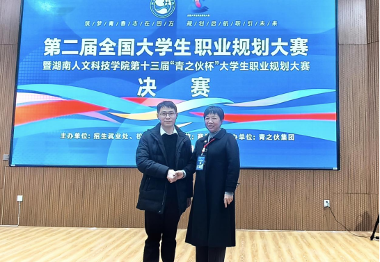 為貫徹落實黨中央、國務院關(guān)于高校畢業(yè)生就業(yè)工作的決策部署,加強高校就業(yè)指導,增強大學生生涯規(guī)劃意識,促進高校畢業(yè)生高質(zhì)量充分就業(yè)。12月10日,第二屆全國大學生職業(yè)規(guī)劃大賽暨湖南人文科技學院第十三屆“青之伙杯”職要有你——大學生職業(yè)規(guī)劃大賽在湖南人文科技學院匠成樓報告廳舉行。校黨委委員、副校長譚峰亮、婁底市人力資源和社會保障局就業(yè)服務中心創(chuàng)業(yè)服務部部長康杜娟、婁底市企業(yè)聯(lián)合會副秘書長兼校企合作宣傳部部長劉娟、創(chuàng)新創(chuàng)業(yè)指導中心黨支部書記曾真飚、招生就業(yè)處處長劉紅燃出席并頒獎,參加活動的還有利通磁電、市節(jié)能環(huán)保產(chǎn)業(yè)促進中心、湘輝智匯人力資源和洪申科技等企業(yè)負責人。