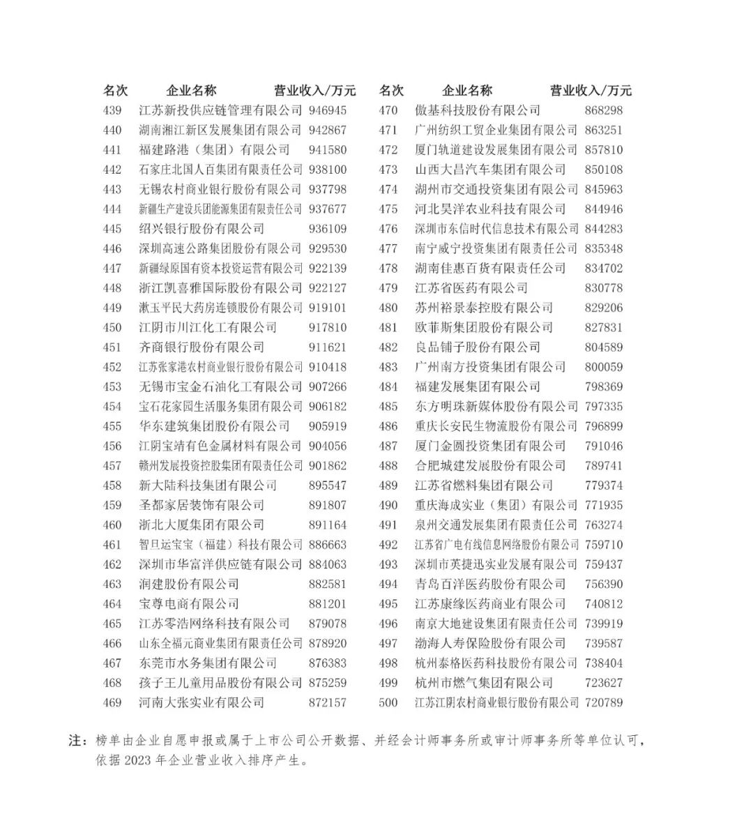 以“向‘新’而行 打造更多世界一流企業(yè)”為主題的“2024中國500強企業(yè)高峰論壇”,于9月10—11日在天津市舉行。會上,中國企業(yè)聯(lián)合會、中國企業(yè)家協(xié)會連續(xù)第23次發(fā)布中國企業(yè)500強等各項榜單。
