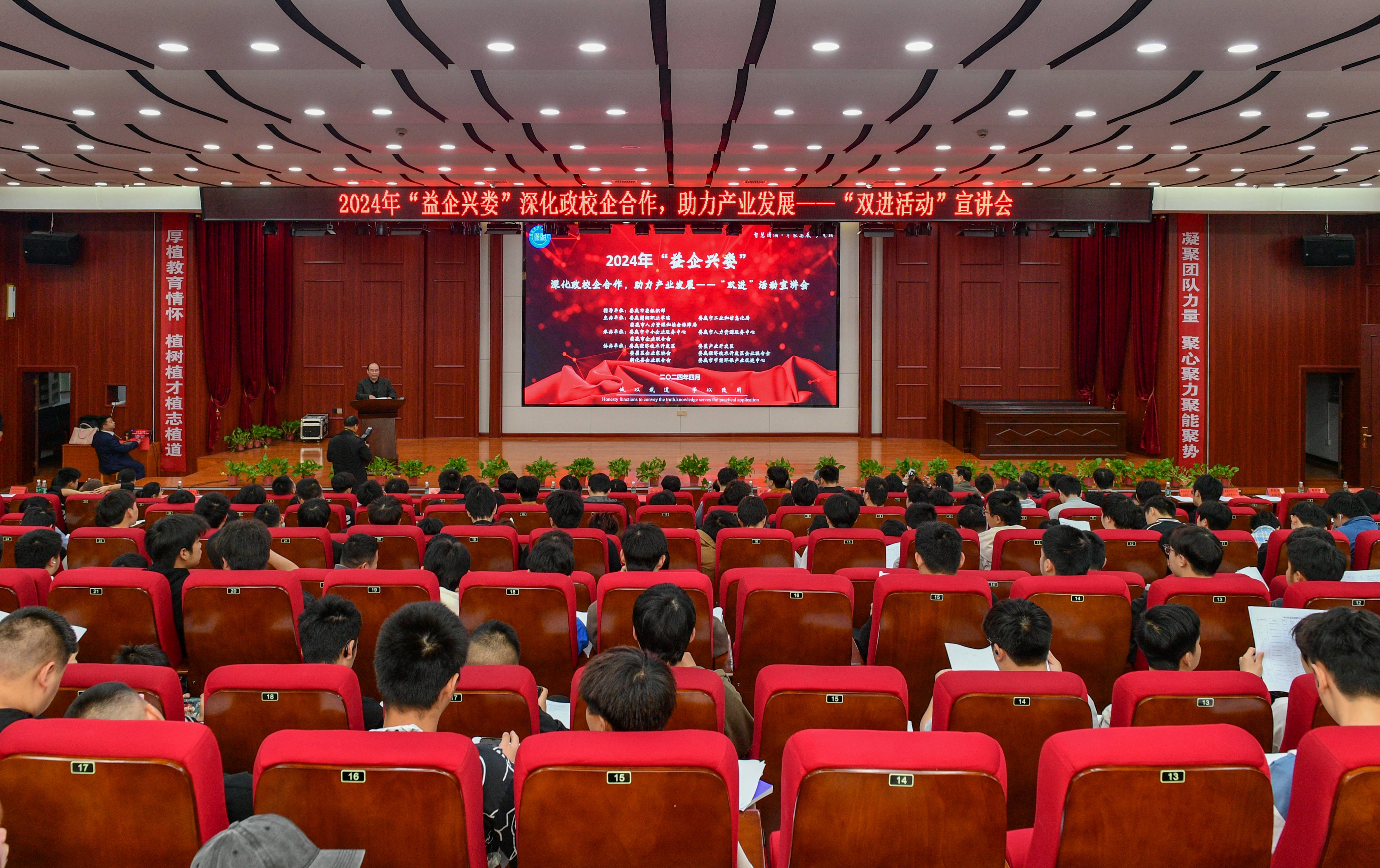 為深入推進校企人才供需對接,4月12日,婁底市2024年“益企興婁”深化政校企合作,助力產(chǎn)業(yè)發(fā)展——“雙進”活動宣講會走進婁底瀟湘職業(yè)學(xué)院。此次活動由婁底瀟湘職業(yè)學(xué)院、婁底市工業(yè)和信息化局、婁底市人力資源和社會保障局聯(lián)合主辦,婁底市中小企業(yè)服務(wù)中心、婁底市人力資源服務(wù)中心、婁底市企業(yè)聯(lián)合會承辦,婁底經(jīng)濟技術(shù)開發(fā)區(qū)管委會、婁星產(chǎn)業(yè)開發(fā)區(qū)、婁底經(jīng)濟技術(shù)開發(fā)區(qū)企業(yè)聯(lián)合會、新化縣企業(yè)聯(lián)合會、市節(jié)能環(huán)保產(chǎn)業(yè)促進中心協(xié)辦。市老領(lǐng)導(dǎo)余明庭出席活動。