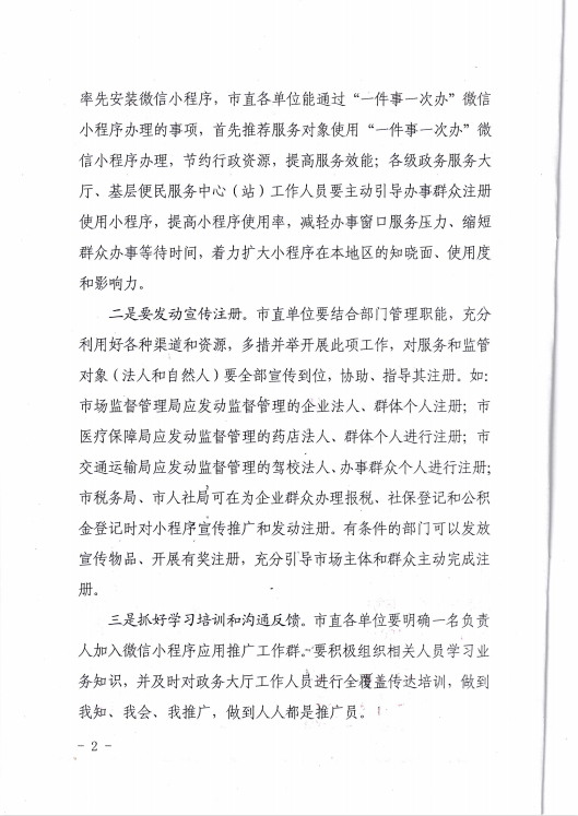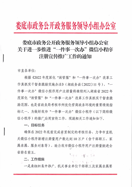 關(guān)于進(jìn)一步推進(jìn)“一件事一次辦”微信小程序注冊(cè)宣傳推廣工作的通知